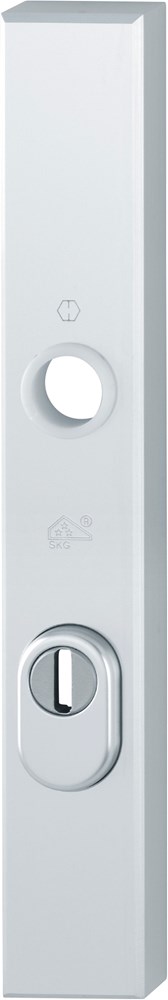 HOPPE rechthoekig inbraakwerend smal buitenschild van massief aluminium, met rondom facet, conform NEN 5089, SKG®***- keurmerk. Buitenzijde met cilinder-kerntrekbeveiliging, Buitenzijde voorzien van stalen nokken