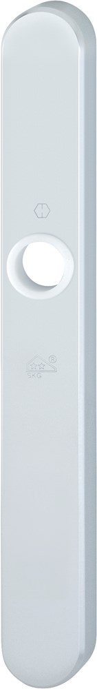 HOPPE afgerond inbraakwerend smal buitenschild van massief aluminium, met rondom facet, conform NEN 5089, SKG®***- keurmerk. Buitenzijde voorzien van stalen nokken