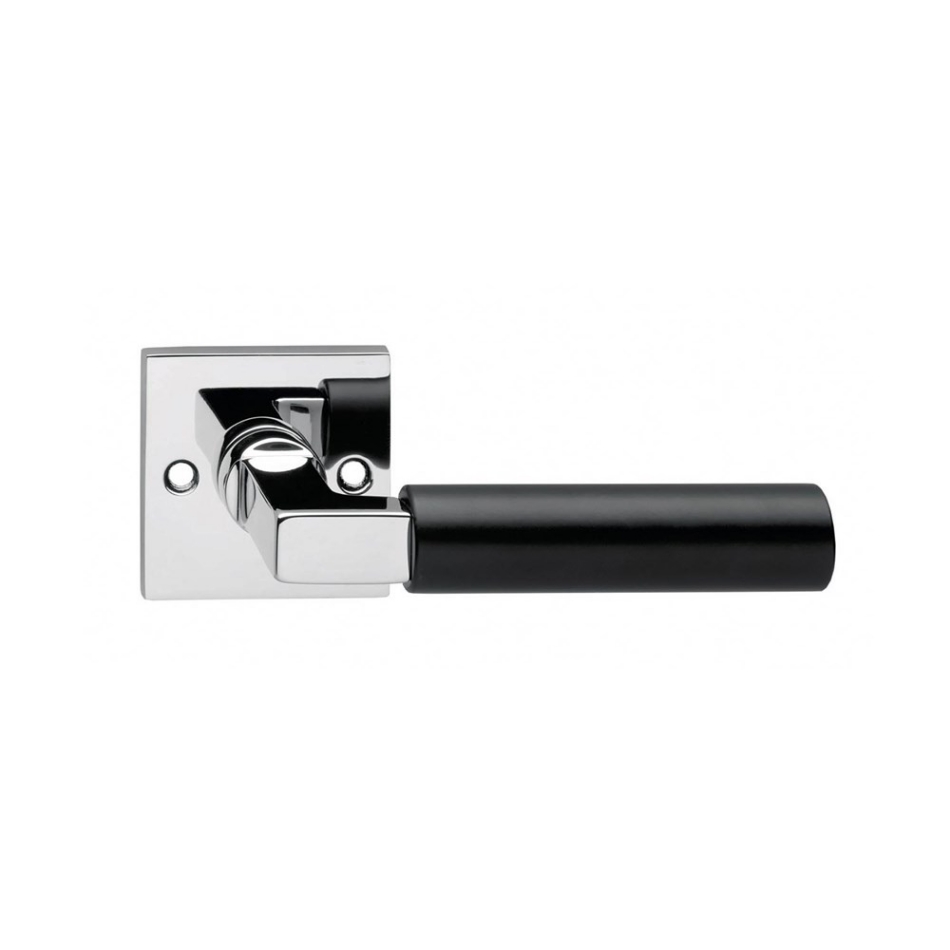 Deurkruk Bau-stil vloeit voort uit de stromingen uit de dertiger jaren, die gekenmerkt werd door Bauhaus en Jugendstil. Deze strakke deurkruk op vierkante opschroevende rozet is uitgevoerd in chroom en mat zwart. Naderhand is deze kruk gepolijst, waardoor het een glanzende uitstraling heeft.