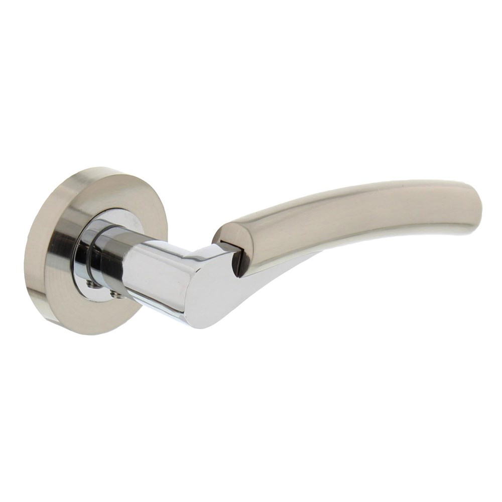Deurkruk Bryan op een ronde rozet heeft een bijzondere kleurencombinatie. Bryan is uitgevoerd in zamak en voorzien van twee finishes: mat nikkel en glanzend chroom. Het design van deurkruk Bryan kenmerkt zich door een ronde en unieke vormgeving. De verdekte rozet is voorzien van nokken, waardoor hij beter op zijn plek wordt gehouden. Daarnaast is de rozet geveerd zodat de deurkruk na gebruik weer terugveert naar zijn horizontale positie. Dit product wordt per paar geleverd inclusief bevestigingsmateriaal voor montage.
