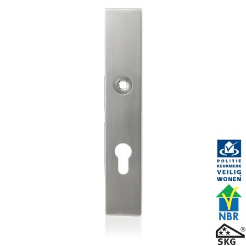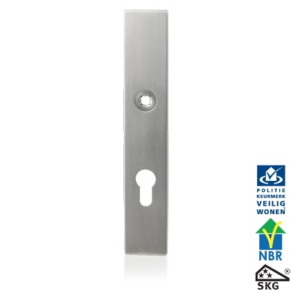 RVS is de afkorting van roestvast staal (in de volksmond ook wel roestvrij staal genoemd). Het is een sterk metaal met hoge kwaliteit. Dit veiligheidsschild heeft een mooie, matte kleur door het geborstelde RVS.