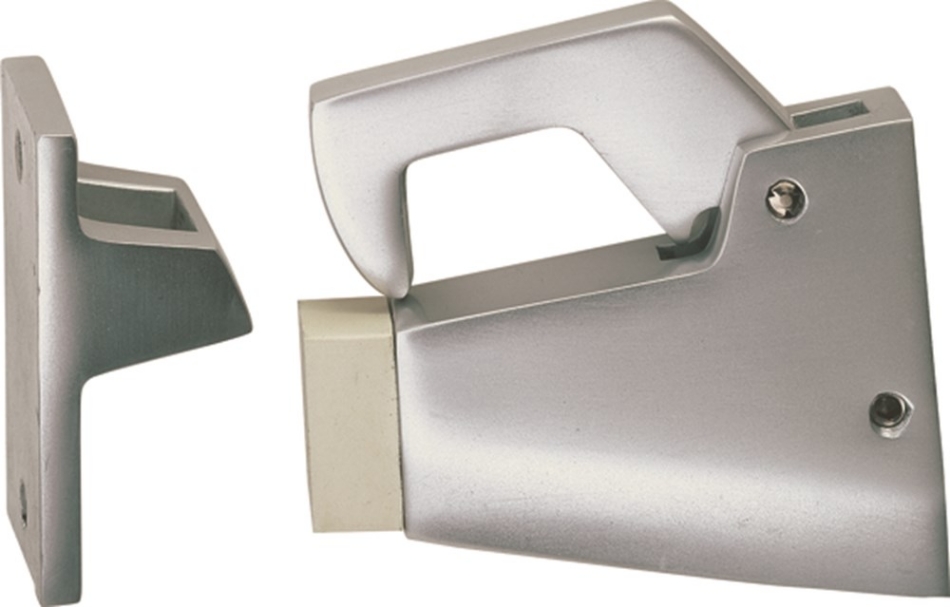 Om de deur te vergrendelen, drukt u deze tegen de grendel. De vanghaak grijpt in de bevestigingslus en zorgt ervoor dat de deur op zijn plaats wordt gehouden. Door de vergrendeling op te tillen komt de deur weer vrij.