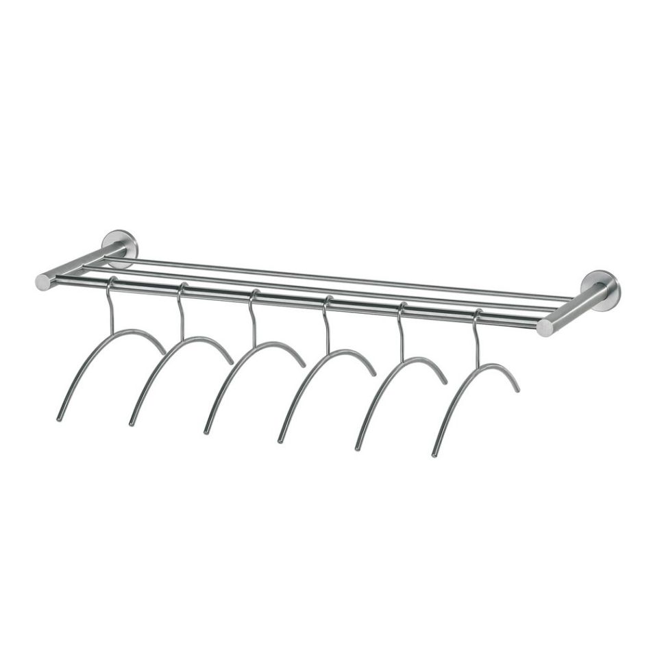Een garderoberek is handig voor het ophangen van onder andere jassen. Dit garderoberek is uitgevoerd in roestvast staal en naderhand geborsteld, waardoor hij een matte uitstraling heeft. Het rvs garderoberek is voorzien van zes kledinghangers, zodat u eenvoudig meerdere jassen op kunt hangen. Het garderoberek heeft een breedte van 1 meter en heeft een verdekte bevestiging. Montage aan de wand is eenvoudig met het meegeleverde bevestigingsmateriaal.