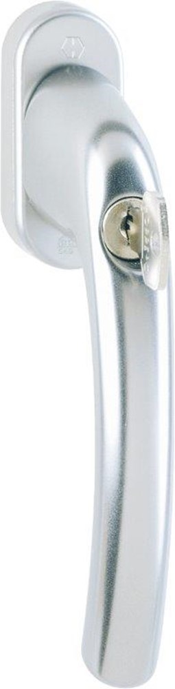 HOPPE aluminium draaikiep-raamgreep, afsluitbaar d.m.v. drukcilinder met keersleutel, verend gelagerde, draaibare afdekrozet, kunststof rozet met nokken, 7mm volvierkantstift, blokkering (voor exacte positionering).