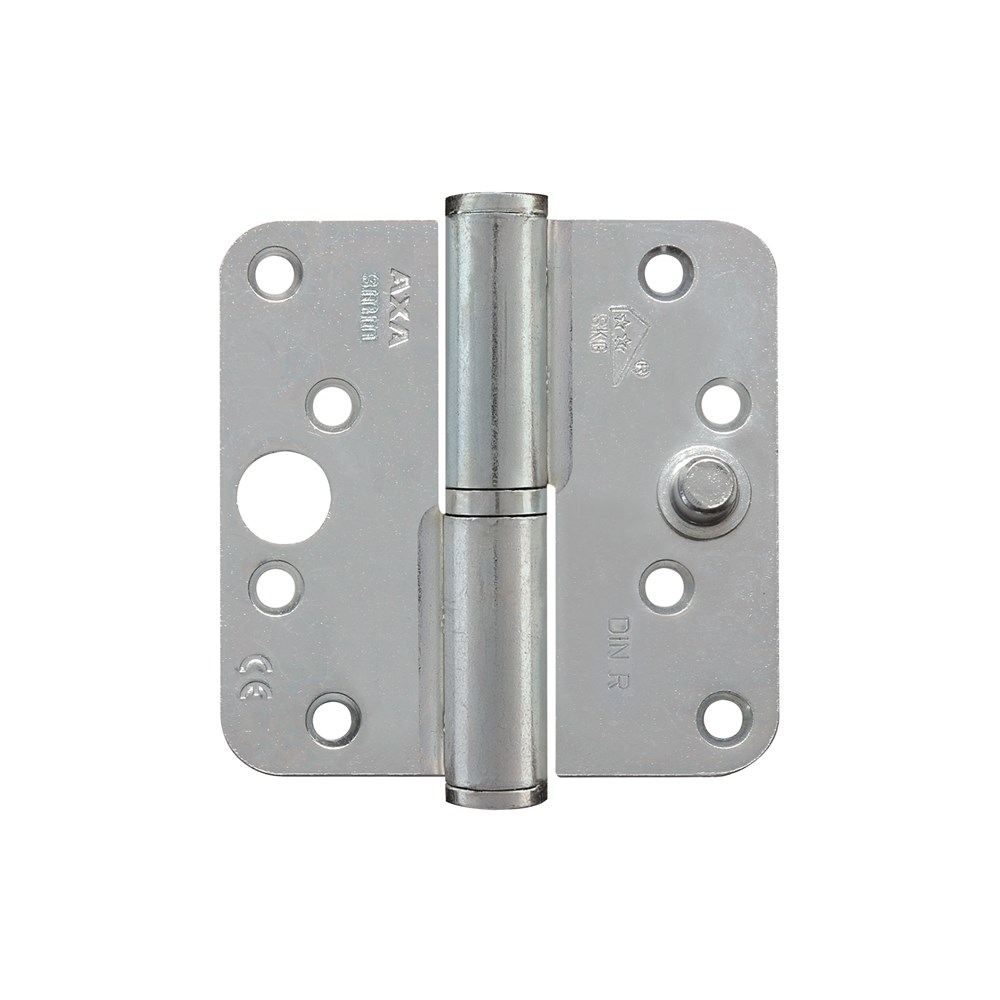 Solide, lichtlopende, inbraakwerende stalen AXA veiligheids kogelstiftpaumelle met een hoog draagvermogen en ronde hoeken.