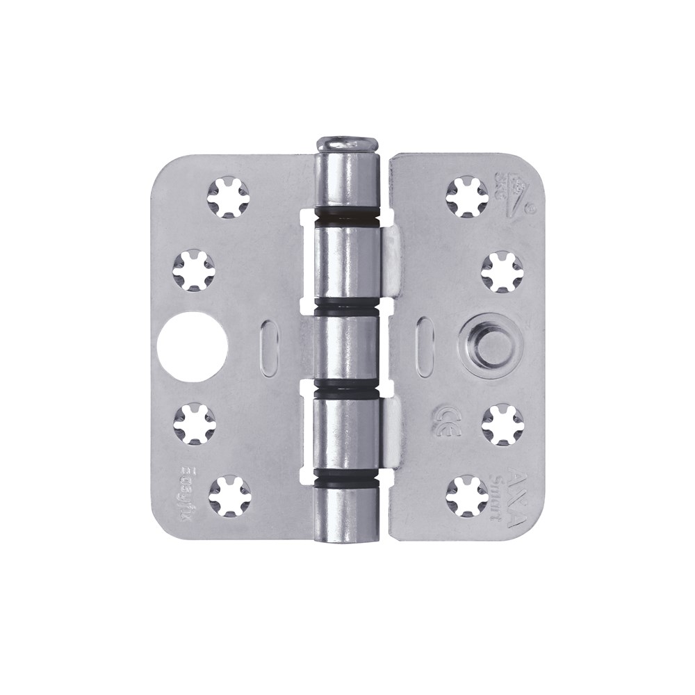 Lichtlopend, inbraakwerend, stalen AXA Smart Easyfix® veiligheids AXAPomlager scharnier met een extra hoog draagvermogen en ronde hoeken.