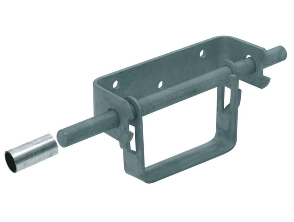 Varkenshokgrendel, klassieke uitvoering, voor gebruik als grendelsluiting bij dierenhokken, boerderijhekken, poorten en tuindeuren.
