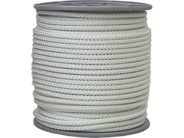 Gevlochten, wit, met kern. Op haspels. dikte mm : 8,0 lengte mm : 100 breeksterkte kg : 1.300