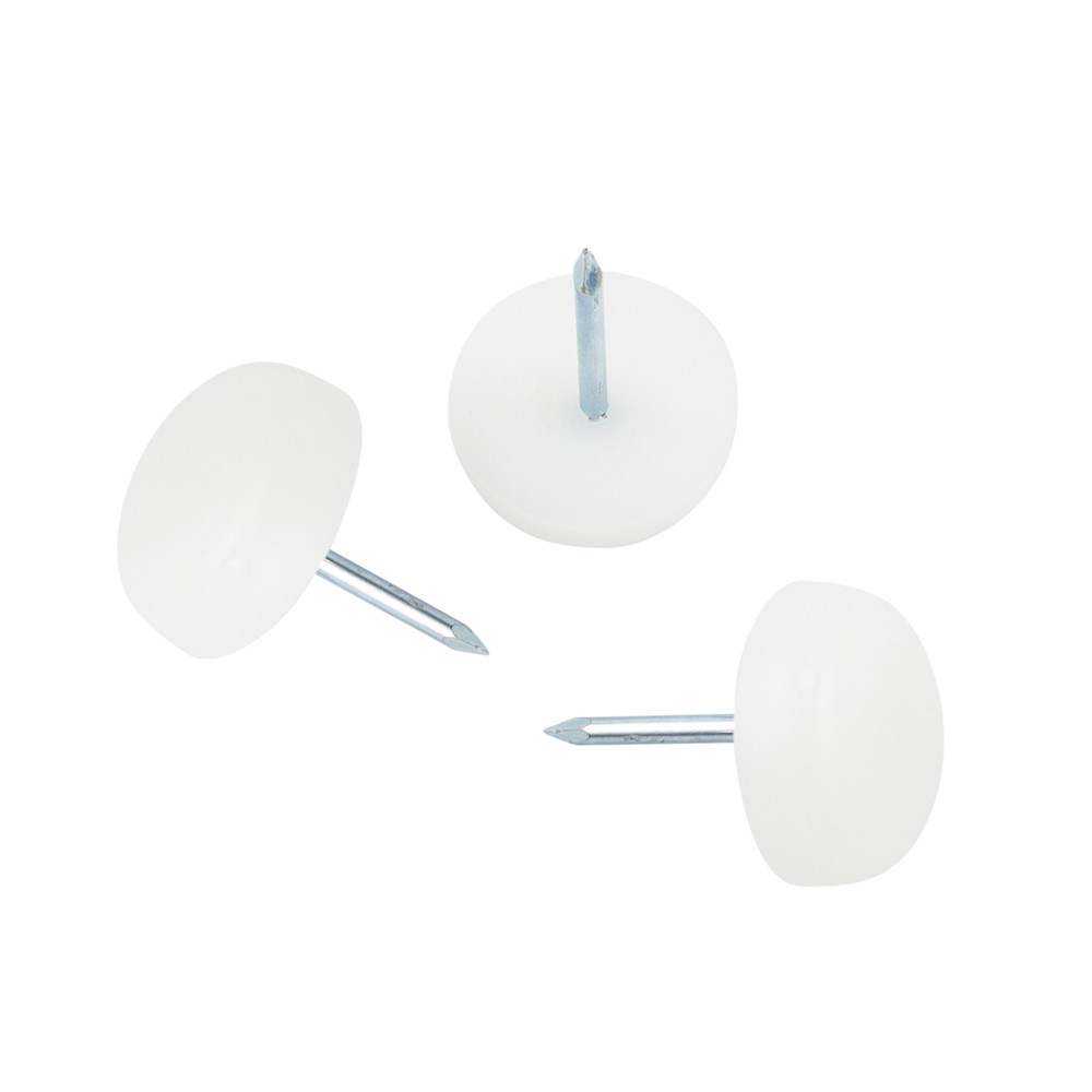 Nylon meubelglijder met stalen nagel. Met deze vloerglijder beschermt u uw vloer, voorkomt u nare krassen of beschadigingen op uw tegels of plavuizen. De meubelglijders zorgen bovendien voor geluiddemping. Het nare krassen en piepen door het schuiven van bijvoorbeeld stoelen is dan verleden tijd.