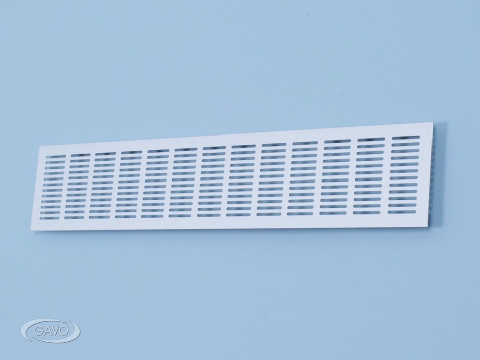 Geschikt voor vele toepassingen, bijvoorbeeld voor plaatsing in werkbladen boven radiatoren, in keukenplinten voor ventilatie van inbouwapparatuur, deuren etc