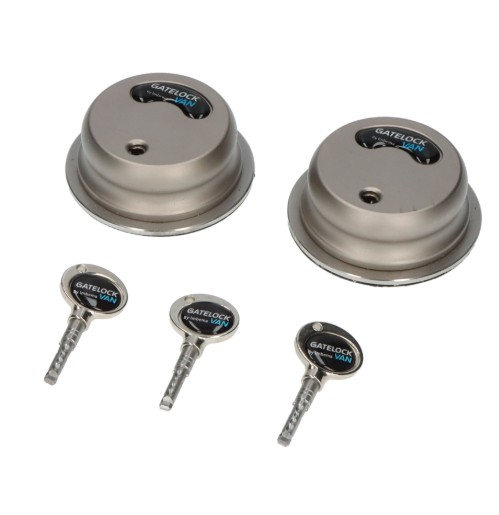 De Gatelock Van Small F-serie is een universeel beveiligingsslot, waarbij u slechts één gat hoeft te boren. U plaatst het slot eenvoudig zelf, met een inbussleutel en een boor. Het slot kan in slechts 15 minuten op zowel achterdeuren als zijschuifdeuren van elk type voertuig worden geïnstalleerd. Voor montage op achter + zijdeur