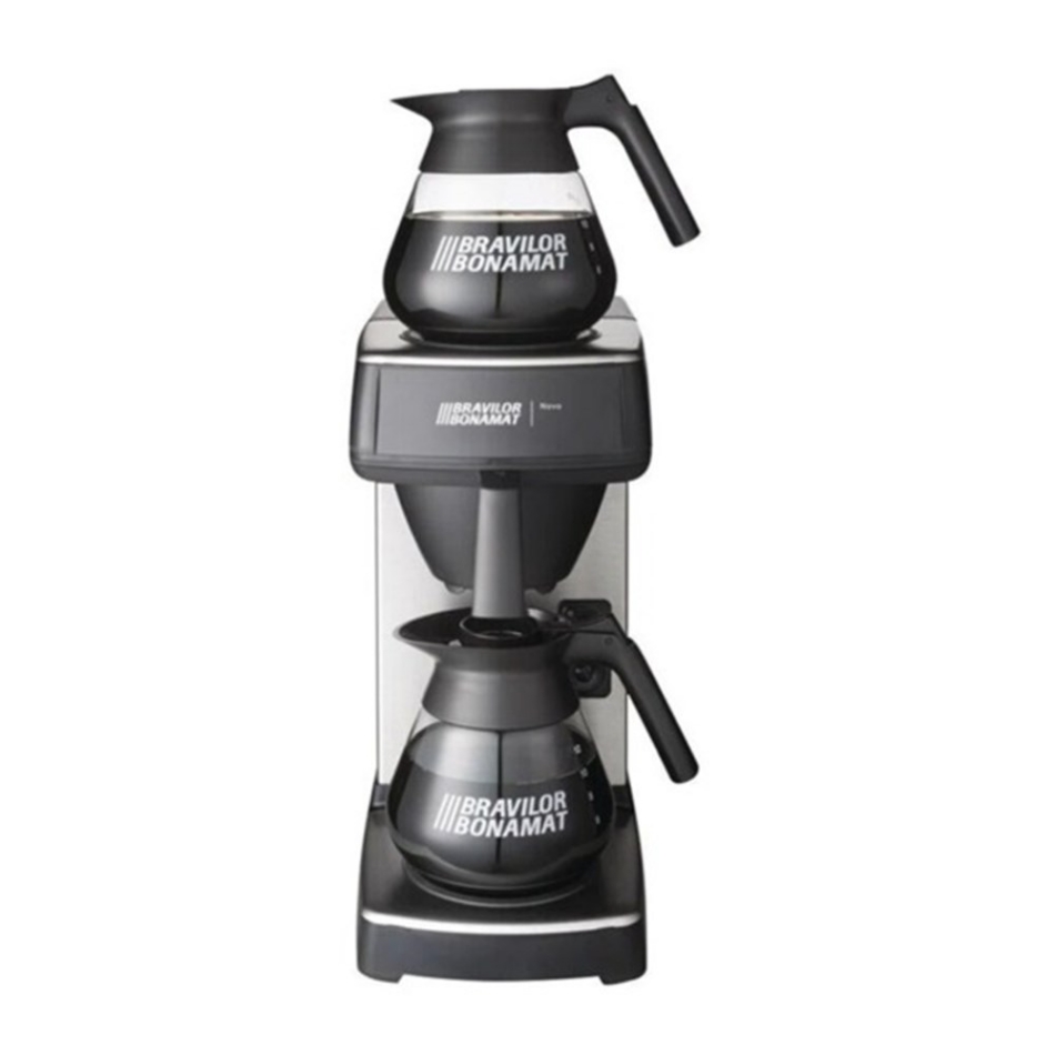 Snelfilterapparatuur voor locaties zonder wateraansluiting. Uitvoering met 1 zetsysteem en 2 warmhoudplaten. Inclusief glazen kan en kunststof filterpan.