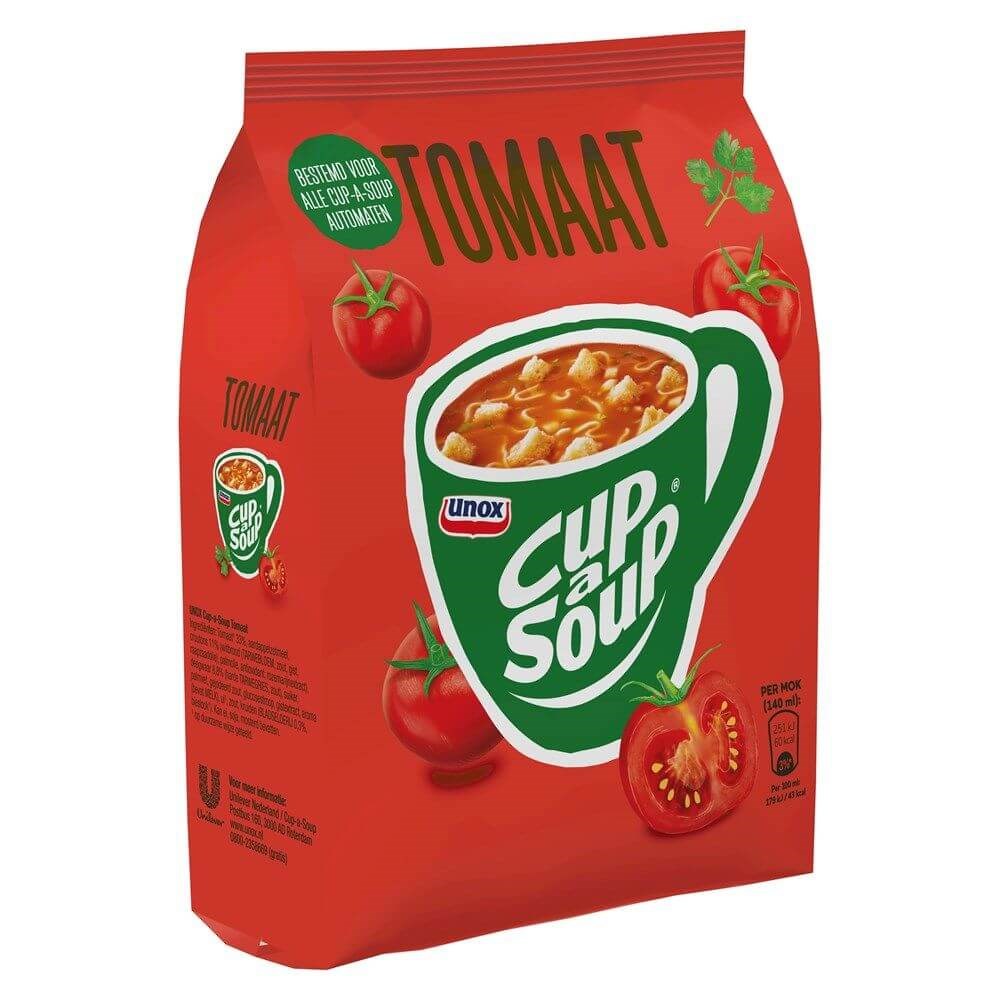 Unox Cup-a-Soup Tomaat is bereid met lekkere friszoete tomaten. Onze boeren verbouwen de beste, duurzame tomaten. We drogen deze zorgvuldig en voegen de juiste hoeveelheid kruiden toe voor de lekkerste smaak. Zo bieden wij de lekkerste soepen voor tussendoor: een hartige boost om een dipje te voorkomen. Eén machinezak Cup-a-Soup bevat 40 servings van 140 milliliter. De machinezakken zijn geschikt voor de Cup-a-Soup-systemen: Mini (3 smaken), Table Top A, C en D (3 smaken) en Stand Alone (4 smaken). In deze Cup-a-Soup-variant zitten geen smaakversterkers, kunstmatige kleurstoffen en conserveermiddelen. Het product is daarnaast ook geschikt voor vegetariërs.