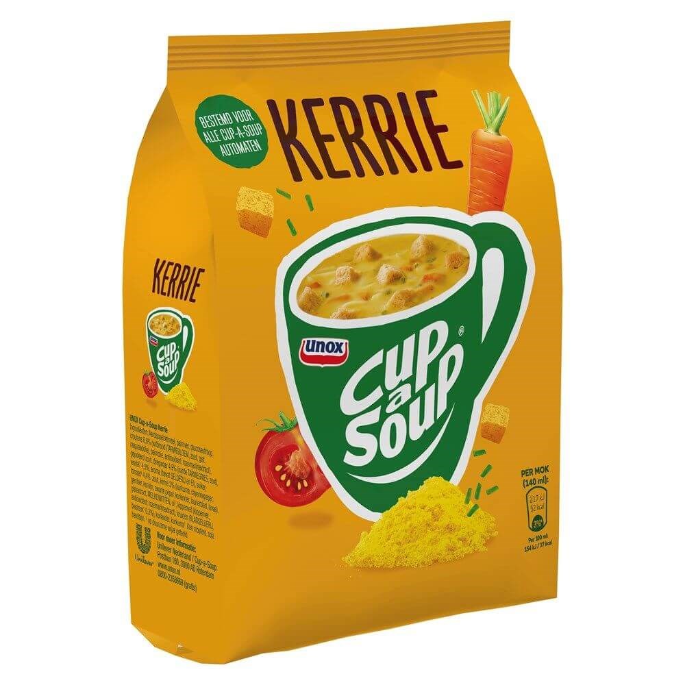 Unox Cup-a-Soup Kerrie is gemaakt met een heerlijk rijke kruidenmix. Onze boeren verbouwen de beste ingrediënten. We drogen deze ingrediënten zorgvuldig en voegen de juiste hoeveelheid kruiden toe voor de lekkerste smaak. Zo bieden wij de lekkerste soepen voor tussendoor: een hartige boost om een dipje te voorkomen. Eén machinezak Cup-a-Soup bevat 40 servings van 140 milliliter. De machinezakken zijn geschikt voor de Cup-a-Soup-systemen: Mini (3 smaken), Table Top A, C en D (3 smaken) en Stand Alone (4 smaken). In deze Cup-a-Soup-variant zitten geen smaakversterkers, kunstmatige kleurstoffen en conserveermiddelen.