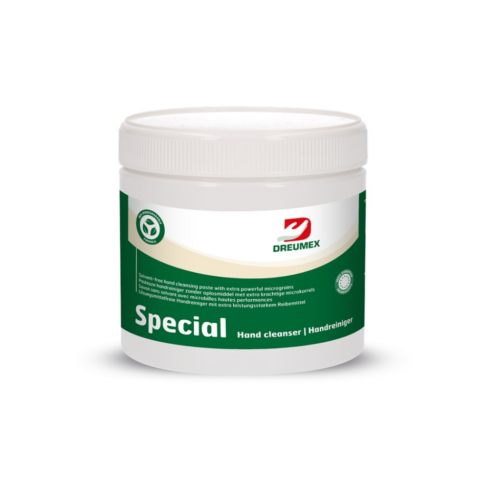 Oplosmiddelvrije handreinigingspasta voor middelzware tot zware vervuiling zoals remvloeistof, cement, olie, smeermiddelen, diesel, vet, hars, teer, roest, metaal(stof). Met name geschikt voor gebruik in de automotive-, bouw- en productie-industrie.