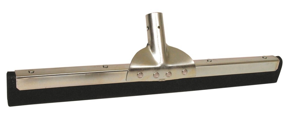 Metalen vloertrekker met steelversteviging en waterkeerrand tegen opspattend water.