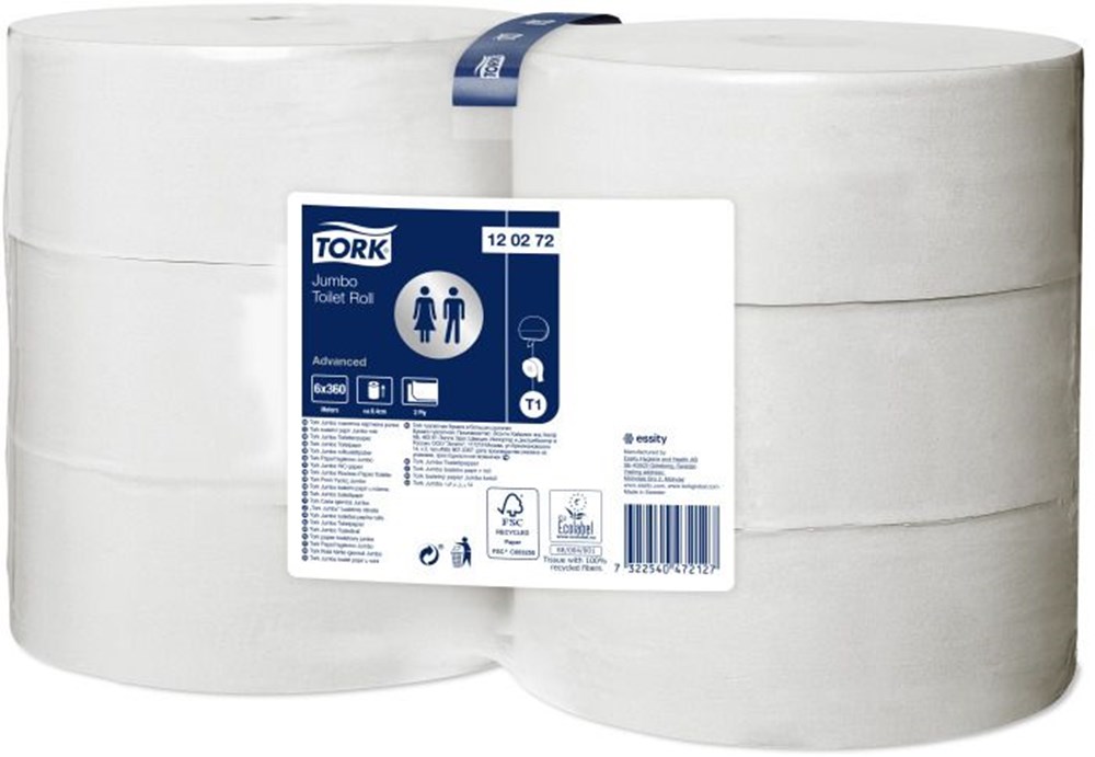 Jumbo toiletpapier is geschikt voor gebruik in combinatie met een dispensersysteem en wordt gebruikt op locaties met een hoog aantal dagelijkse bezoekers.
