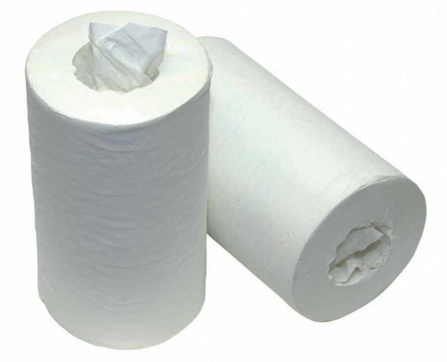 Poetspapier Blanco Centerfeed 1-laags Zonder kern, 120 meters bij 21,5 cm.
