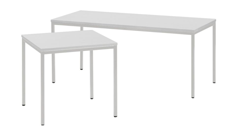 Voorzien van kunststof blad met PVC stootrand, kleur blad en frame lichtgrijs. Blad 25 mm.