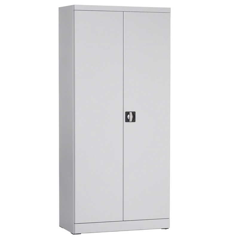 Extra zware uitvoering. Metalen kast met epoxy lak. Afsluitbaar middels RONIS cilinderslot (incl 2 sleutels). Standaard geleverd met 4 verstelbare legborden. Afmetingen 197x96x43 cm, kleur lichtgrijs.