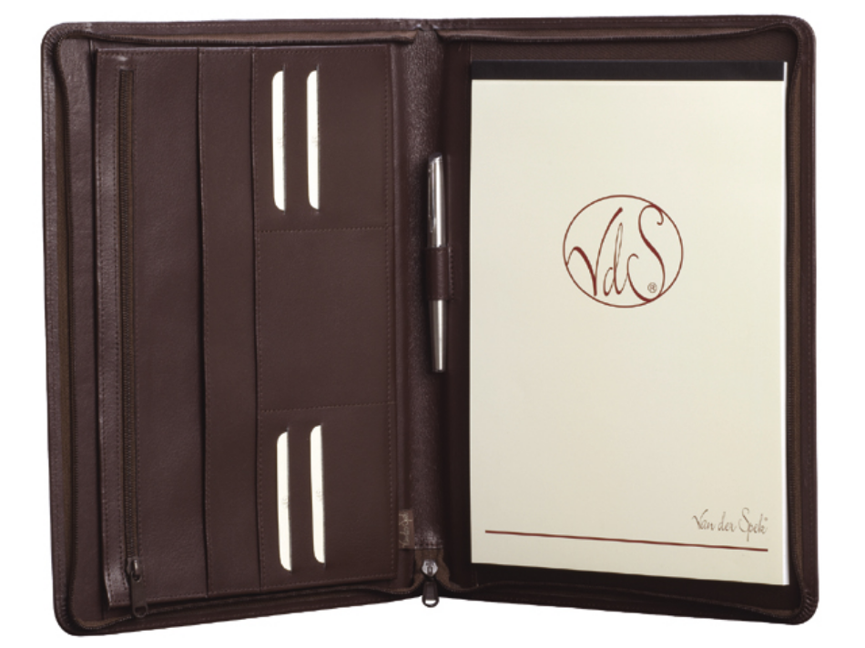 van der Spek schrijfmap economy, a4, 384-632, generfd, rits, leer, bruin