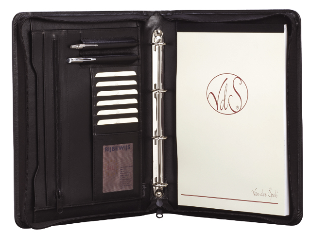 van der Spek schrijfmap economy, a4, 2041-635, generfd, ring/rits, leer, zwart