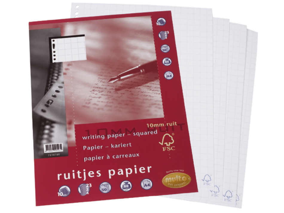 Multo interieurpapier 23rings a4 ruit 10mm 80gram 50vel, 7310160