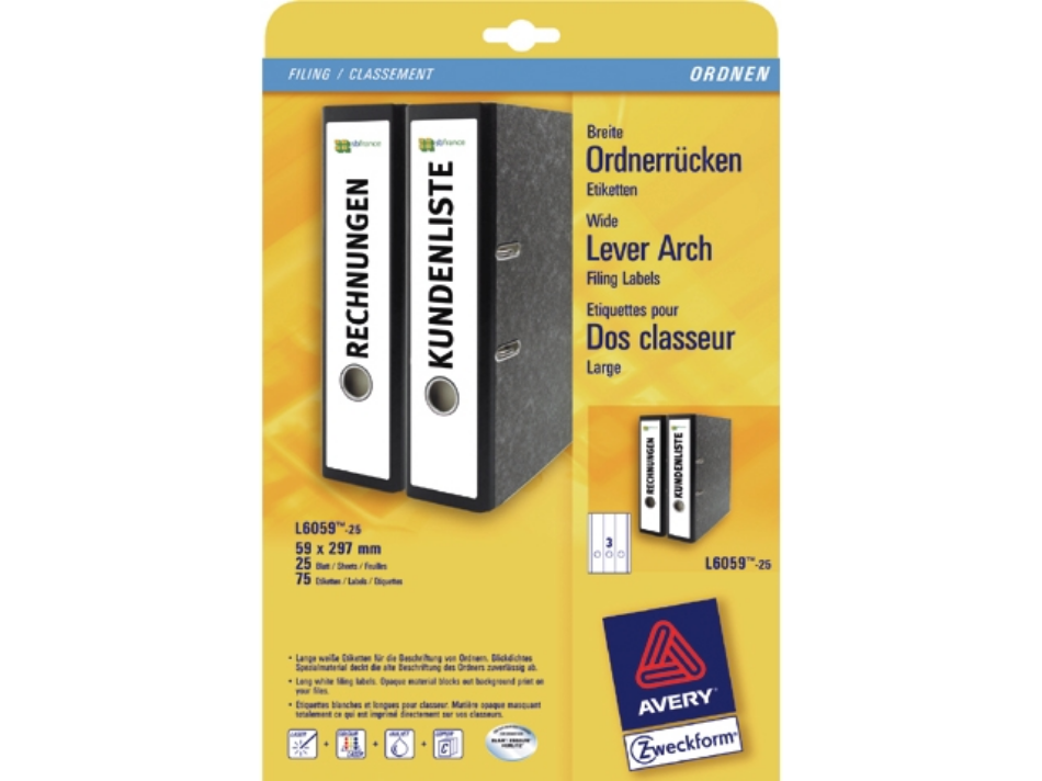 Zweckform rugetiket, 297 x 59 mmm, verpakking 75 stuks, l6059-25, wit