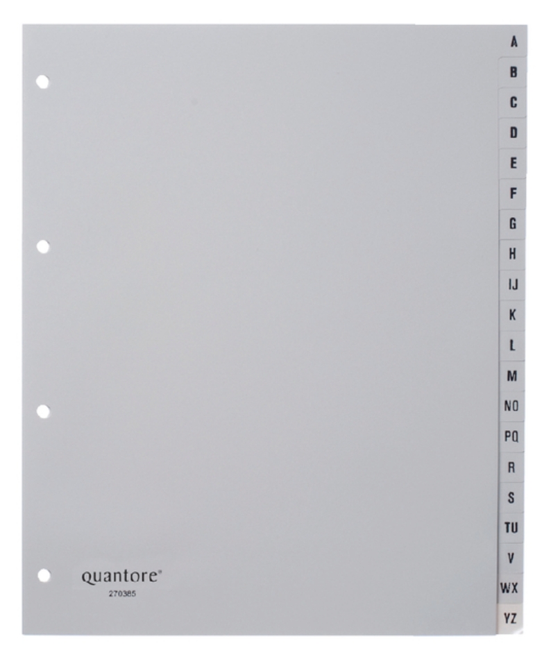 Tabbladen Quantore A4 4-gaats 20-delig met alfabet breed PP