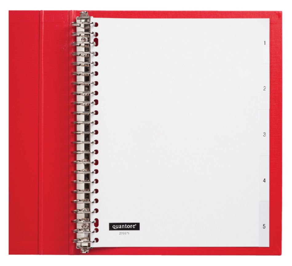 Tabbladen Quantore 23-gaats 1-5 genummerd wit PP