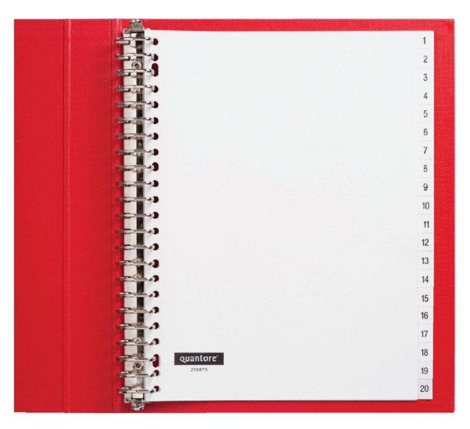 Tabbladen Quantore 23-gaats 1-20 genummerd wit PP