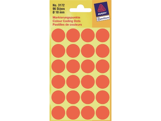 Zweckform etiket, 18 mm, verpakking 96 stuks, 3172, lichtrood