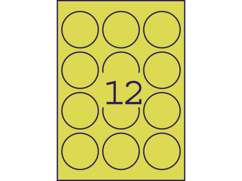 Avery etiket, 63.5 mm, verpakking 300 stuks, rond, l7670y-25, neon geel