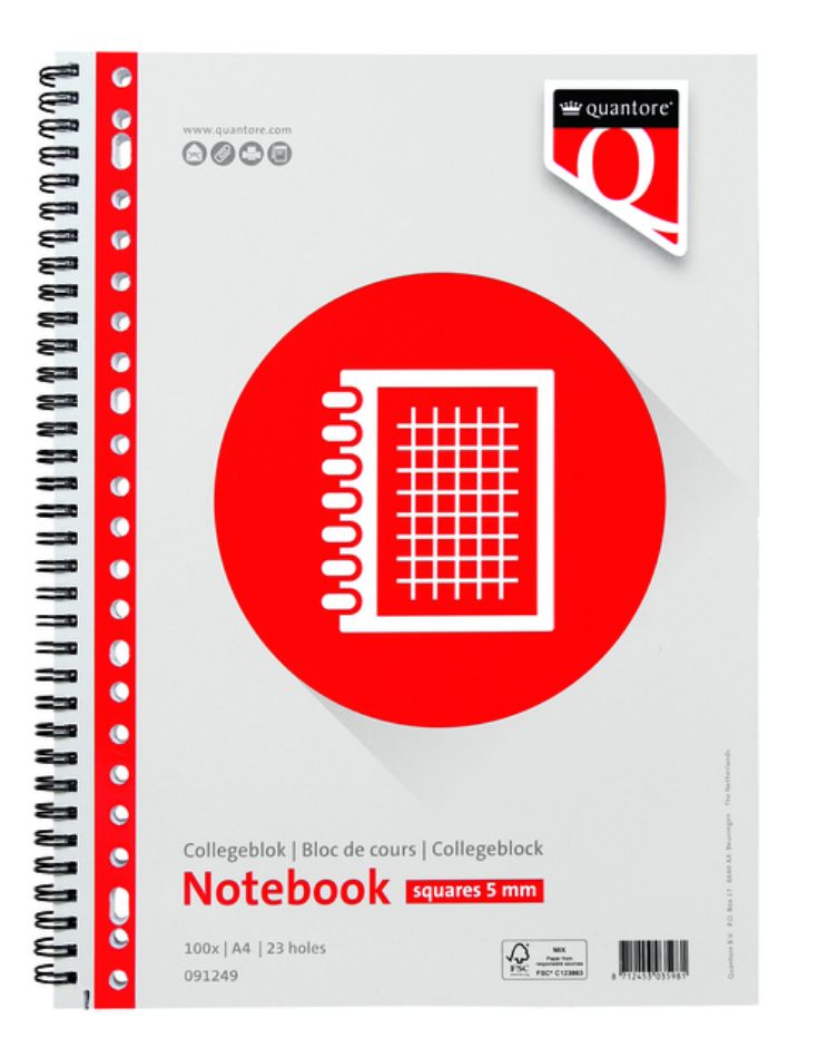 Collegeblok Quantore A4 ruit 5mm 23-gaats 100 vel 70gr