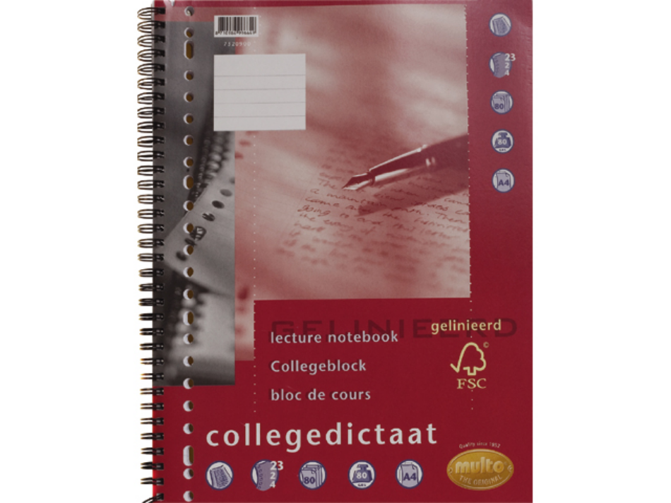 Multo collegedictaat 23rings a4 lijn 80gram 80vel, 7320900