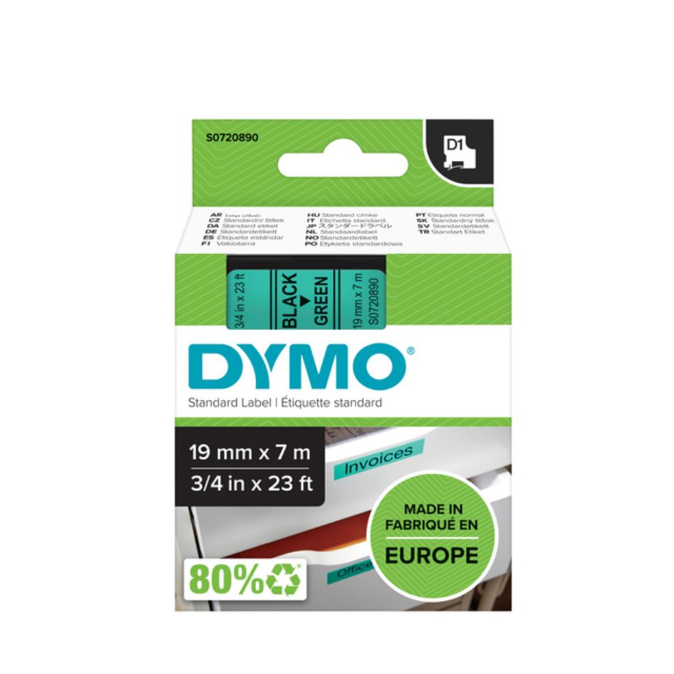 Labeltape Dymo LabelManager D1 polyester 19mm zwart op groen S0720890