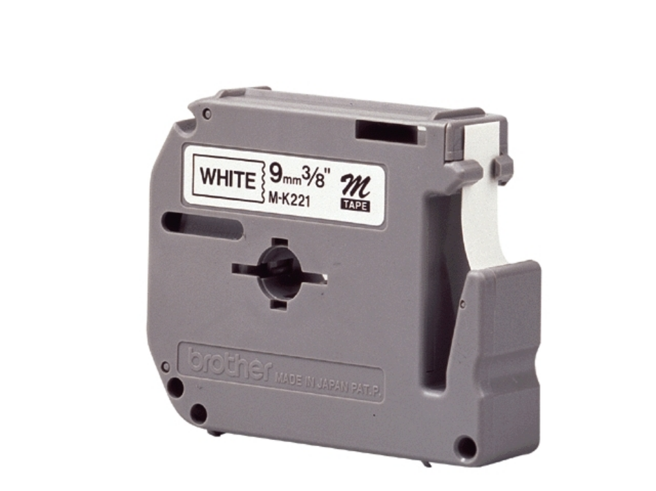 Brother labeltape, 9 mm x 8 meter, mk-221bz, wit/zwart