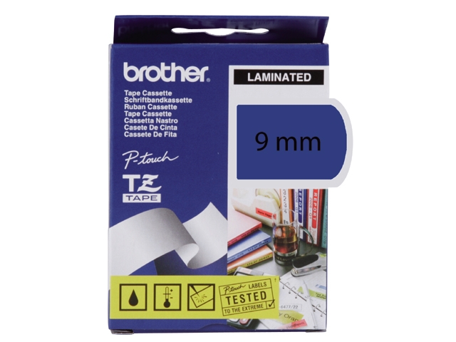 Brother labeltape, 9 mm x 8 meter, tze-521, blauw/zwart