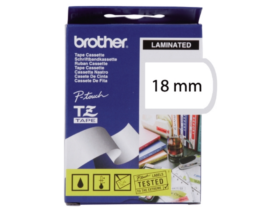 Brother labeltape, 18 mm x 8 meter, tze-n241, wit/zwart