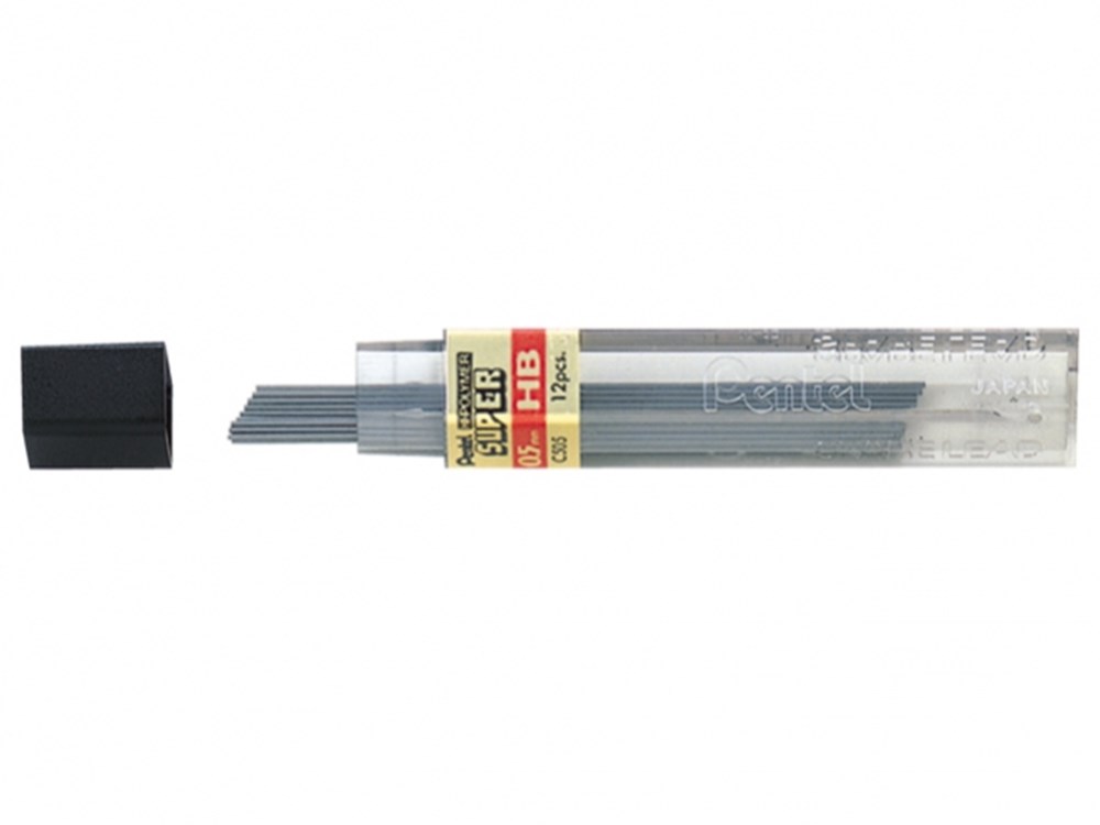 Super hi-polymer stiften 0,5 mm. Hardheid: HB. Materiaal is een mengsel van kunsthars,grafiet en carbon. Zeer dichte structuur zorgt voor een diepzwarte lijn en exacte lijndikte. Soepel en breukvast. Lengte 60mm. Koker 12 stuks