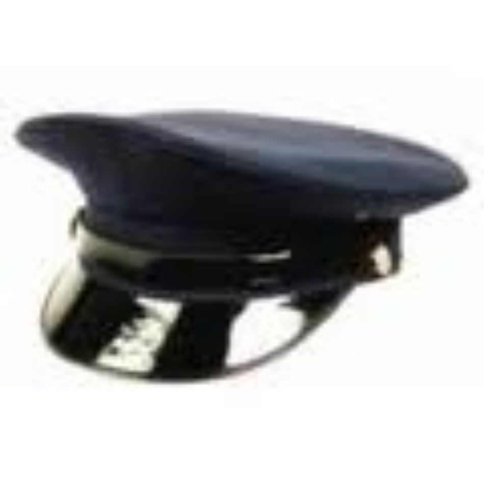 Officiers pet met gladde klep. Uitgevoerd in het donkerblauw met luxe voering.