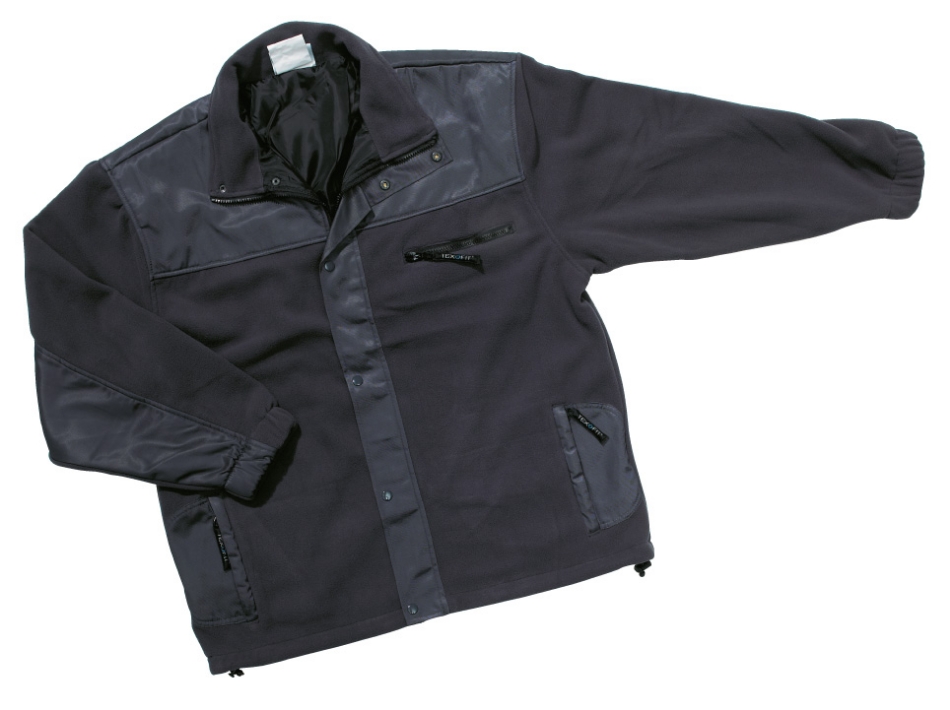 Fleecejas met nylon zomervoering, beaver schouder en armstukken. Verdekte ritssluiting met drukknopen. Borstzak en steekzakken met ritssluiting.