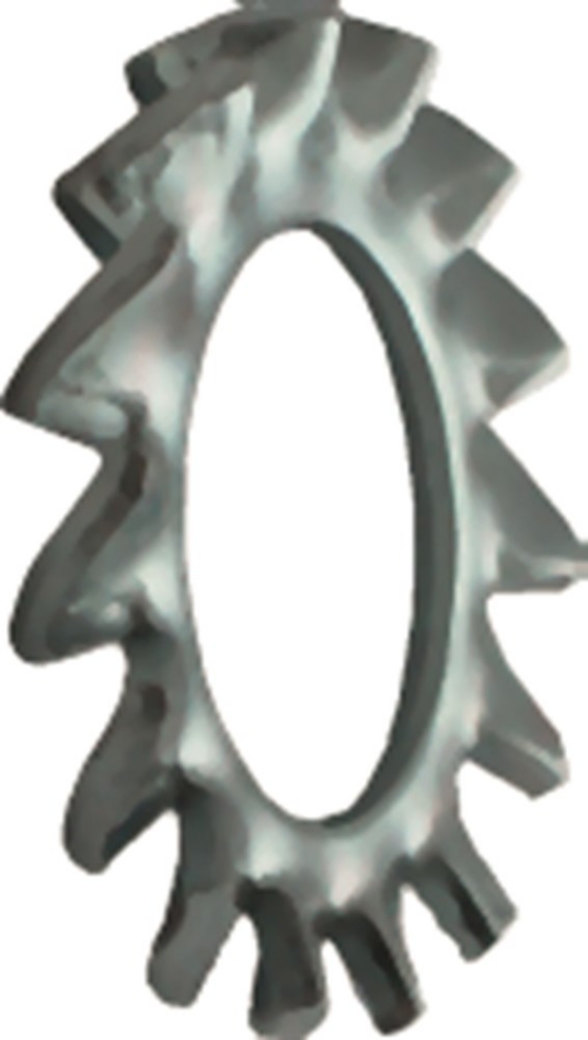 Elektrolytisch verzinkt, met buitenvertanding. Volgens DIN 6798A.