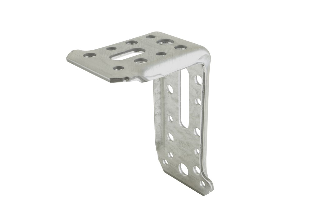 Zwaar hoekanker, extra versterkt met zijrillen. Uitgevoerd met een veelzijdig (slob)gatenpatroon. Uitermate geschikt voor de verankering van zware kozijnen.