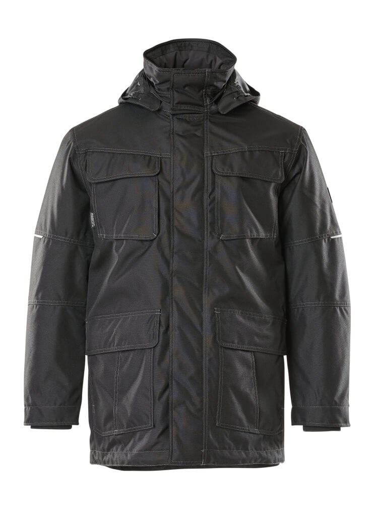 Ademend, wind- en waterdicht. Getapede naden. Uitritsbare bontvoering. Afneembare gevoerde capuchon met verstelbaar elastisch rijgsnoer. Binnenkraag van zacht, slijtvast materiaal. Sluiting met tweewegrits, windvanger en drukknopen. Ritszak onder de windvanger. Borstzakken met klep met verborgen drukknopen. D-ring. Ergonomisch gevormde mouwen zorgen voor extra bewegingsvrijheid. Harmonicazakken met klep en extra zakken. Binnenzak met klittenbandsluiting. Tricot (verborgen in windvanger) en drukknoopsluiting bij de pols. Elastisch rijgsnoer, aan de onderkant verstelbaar. Contraststiksels. Reflectie-effecten.