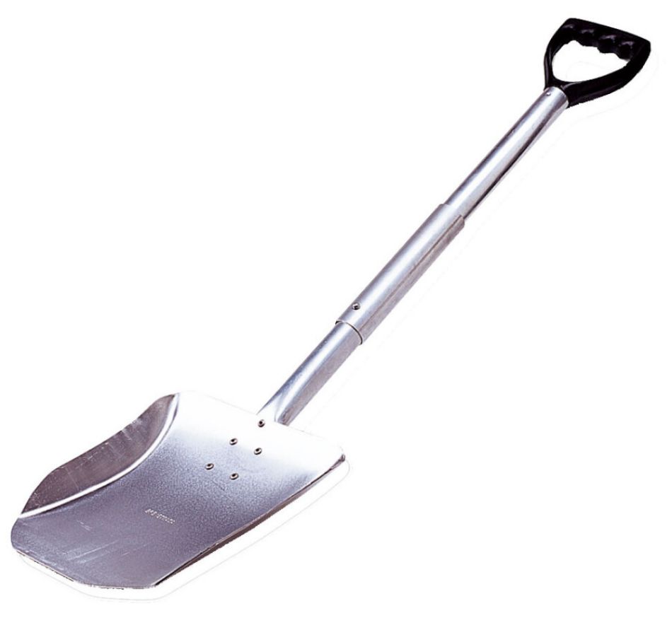 Inklapbare schop voor het vervoer van gevaarlijke stoffen. Gevaarlijke stoffen kunnen opgeschept worden zonder brandgevaar.