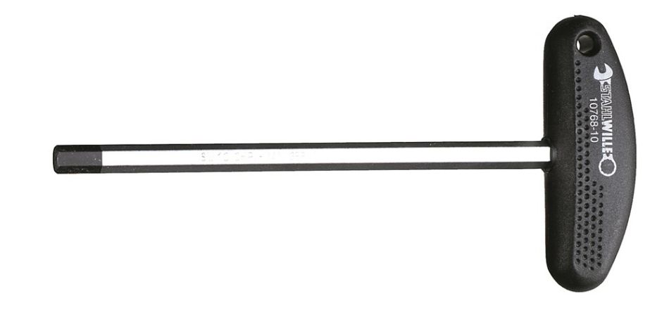 Met T-greep, voor binnenzeskantbouten, Chroom-Vanadium, matverchroomd, zwarte punt.