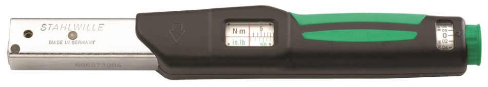 Klikkend, inwendig vierkant voor verwisselbare insteekgereedschappen, QuickRelease-veiligheidsvergrendeling, snelle, nauwkeurige instelling m.b.v. QuickSelect-snelinstelling, dubbel-stop-signaal, zeer goed afleesbare tweekleurige dubbel-schaalverdeling in Nm/in.lb, terugstelling naar "0" is niet noodzakelijk, daar het meetelement alleen bij het aanhalen wordt belast, linksomgebruik d.m.v. het omdraaien van de insteekgereedschappen, doortrekken na de ''klik'' of belasting tegen de functierichting in, bijv. het lostrekken van vastzittende bouten, hebben geen invloed op het meetmechanisme, d.w.z. het mechanisme wordt niet beschadigd, 2-componentengreep met handvriendelijke, groene zachte zone (resistent tegen olie, vetten, brandstoffen, remvloeistof en skydrol), kalibratie met de perfectControl kalibratiebank nr. 7794 of de kalibreerinstallatie nr. 7706. Indien nodig te justeren zonder demontage, met certificaat, DBGM, weergave-afwijking ± 3 %