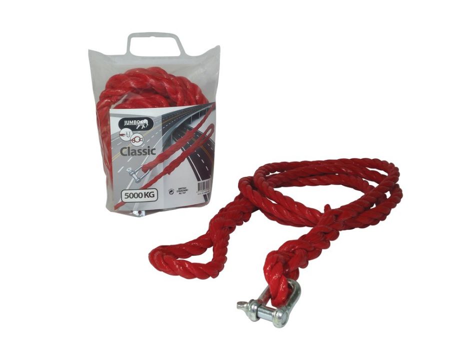 Met deze sterke Jumbo sleepkabel bent u voorbereid op pech onderweg. De kabel is 3,5 meter lang en is geschikt om auto's tot 5000kg te trekken.