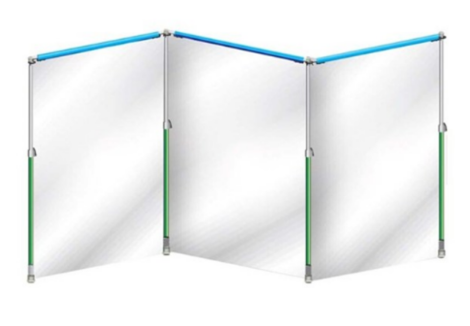 Sluit de ruimte af door meerdere modules te koppelen. Zo kan je de stofwand makkelijk aanpassen aan elke ruimte.
